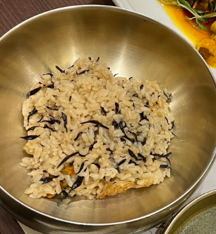밥은 그냥 흰밥이 아니라 해초홍합밥이 나오며 반찬도 다양합니다.